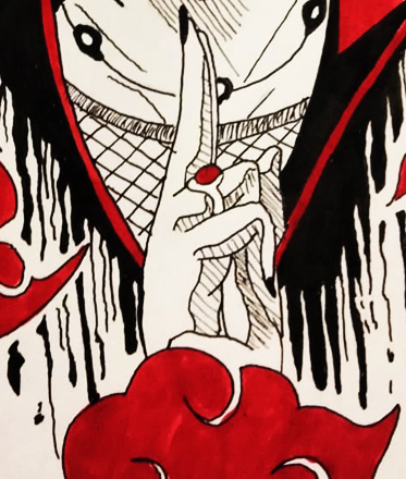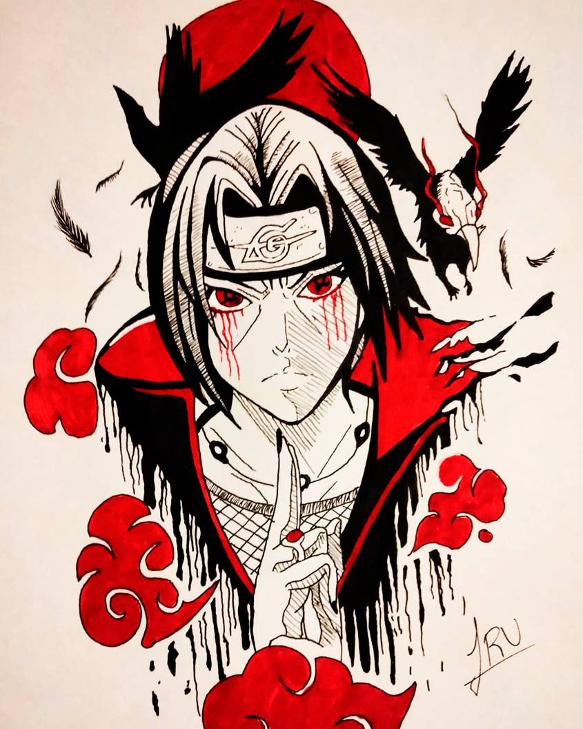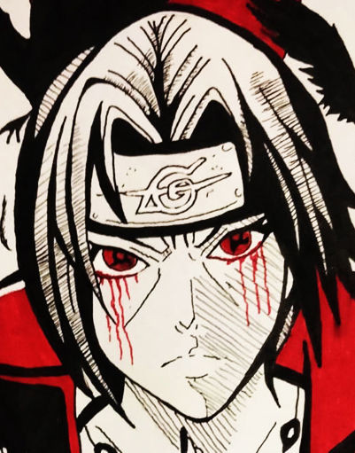 Ilustración del personaje Itachi de Naruto, con estilo manga.
